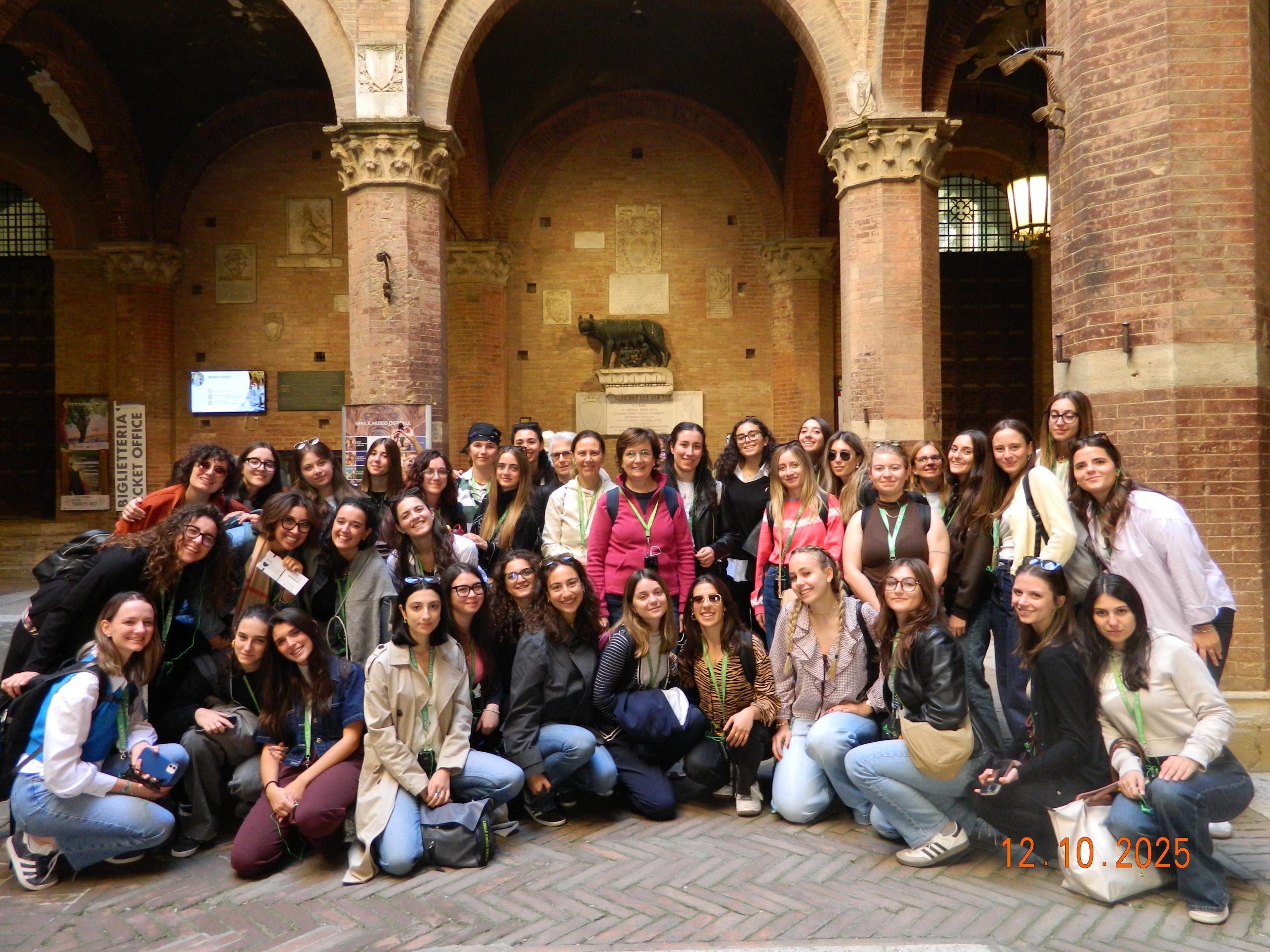 Le residenti di Porta Nevia infine domenica hanno vissuto un’intensa giornata alla scoperta di Siena, città d’arte e di spiritualità, accompagnate dalla guida Mariangela Mori. Ispirate dal tema ispiratore “La bellezza salverà il mondo”, l’itinerario ha condotto le ragazze tra vedute panoramiche e luoghi simbolo della città: dalla Basilica Cateriniana di San Domenico alle vie storiche con i palazzi medievali e la suggestiva Piazza del Campo, teatro del celebre Palio delle Contrade. La visita è proseguita al Museo Civico nel Palazzo Pubblico, dove si conserva proprio l’affresco del Buon Governo di Ambrogio Lorenzetti, e si è conclusa con l’ingresso al Duomo di Siena, autentico capolavoro dell’arte gotica. Un percorso tra cultura, fede e bellezza, capace di nutrire lo sguardo e l’anima.